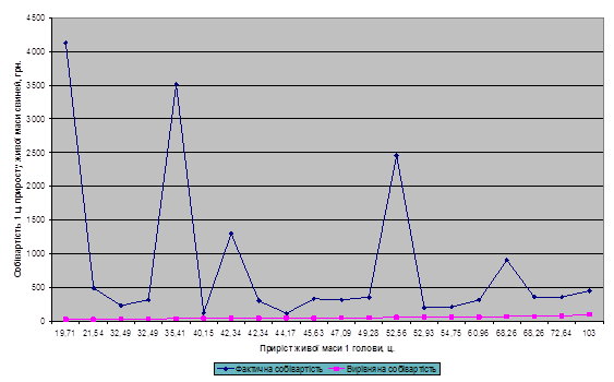 «Сонячне» становить -231,039 грн. Фактична ж собівартість приросту живої маси